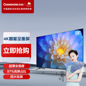 该款长虹电视58D4PS 58英寸全面屏 网络智能 4K超高清HDR 平板LED液晶电视机(黑色) 还不错的, 使用舒适 , 长辈适用 , 安装成功 。买的人算...